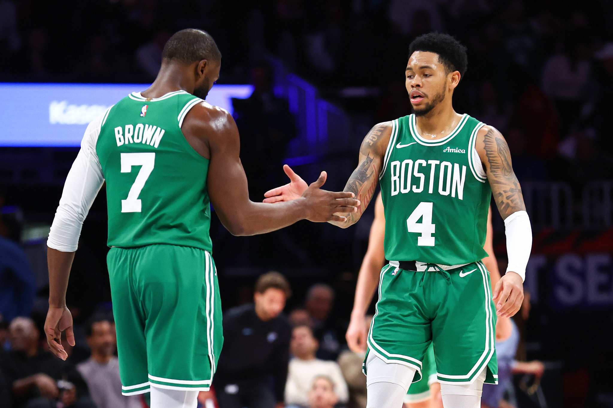 凯尔特人方面,西蒙斯7记三分轰下赛季新高39分,布朗27分7篮板,豪泽17分;热火方面,鲍威尔26分,希罗22分3抢断,阿德巴约22分5助攻,维金斯16分8篮板。